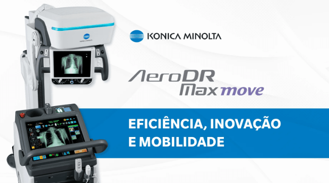 Equipamentos de raios X móveis motorizados, como o AeroDR Maxmove da Konica Minolta, otimizam o fluxo de trabalho ao permitir a realização de exames diretamente no leito do paciente, além de facilitar a mobilidade e operação para os profissionais de saúde.